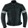 Men’s Motorcycle Leather Jacket with Protectors Black with White Stripes Winter/Summer Quilted Genuine Leather Biker Jacket